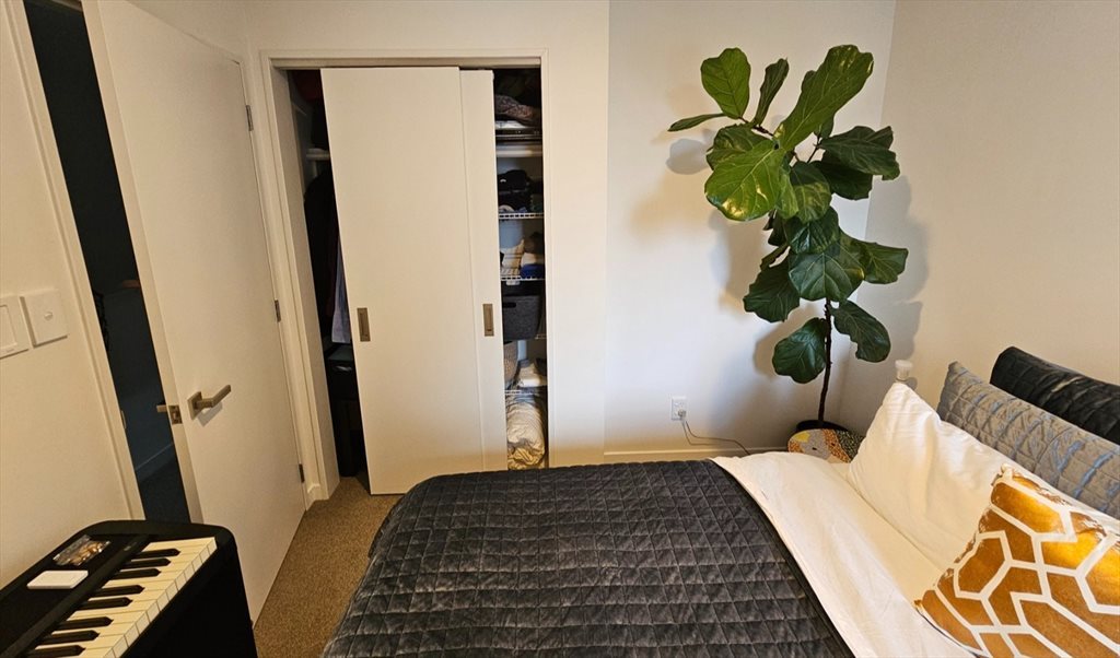 About the room: Solid queen bed with a pocket string mattress. Spare furnishings are available for use but can be removed. Room has a built-in wardrobe.