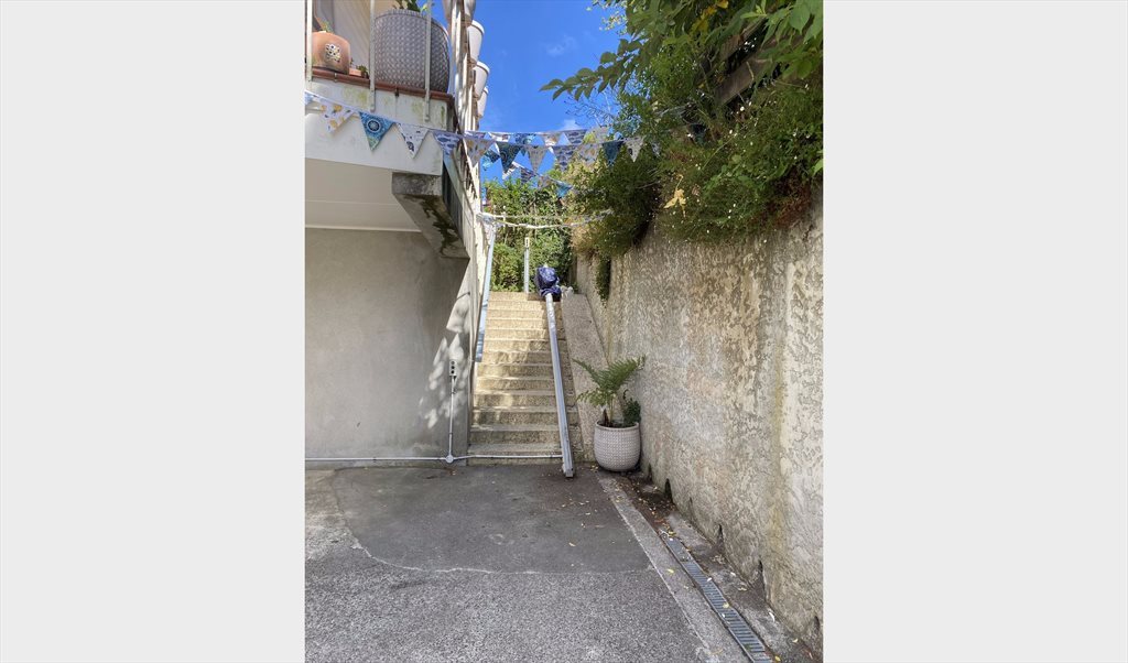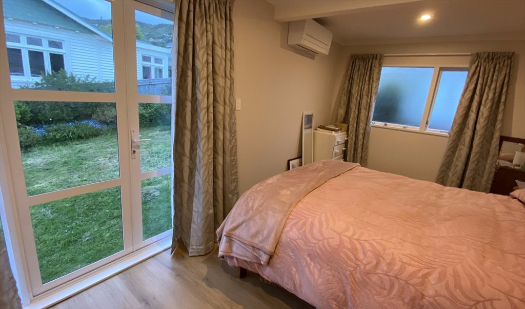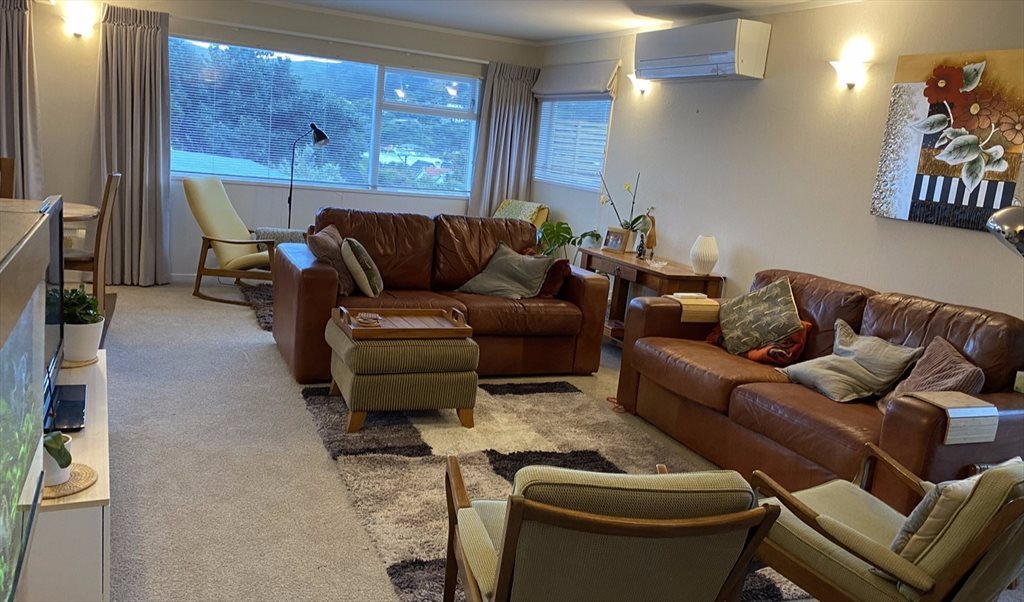 House is the rear unit, up a flight of stairs, with good views over Karori. It is a very tranquil spot despite being a 5 min walk to Karori shops, restaurants, bus stops (2, 18 and 21 with easy access to town, Vic, the train station and the airport). Plenty of free on-street parking.